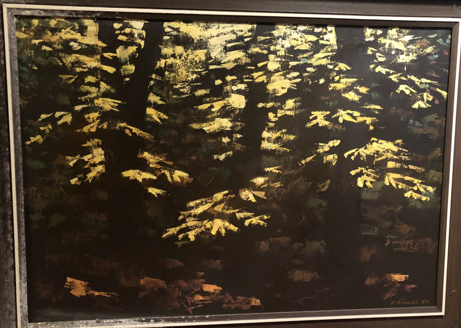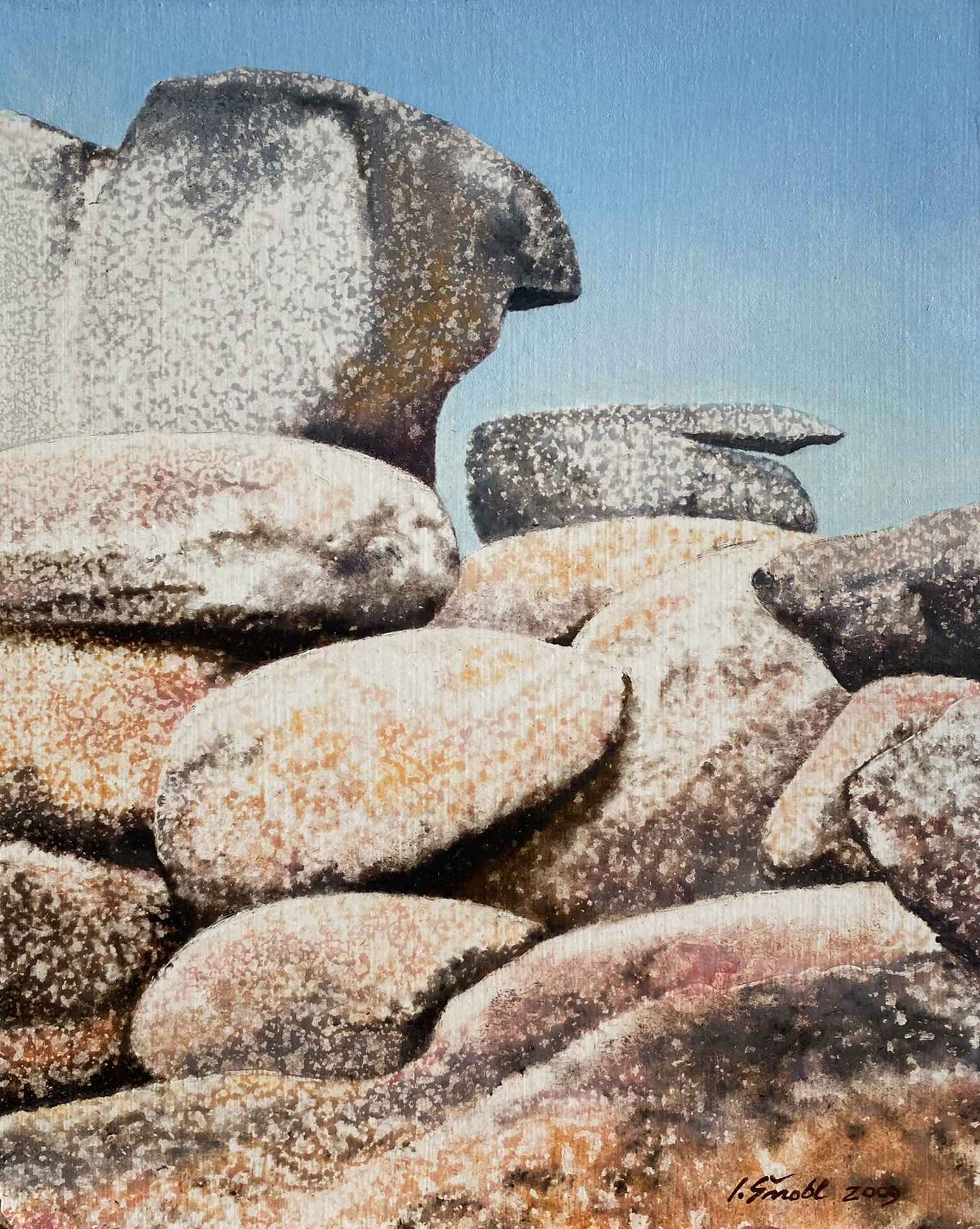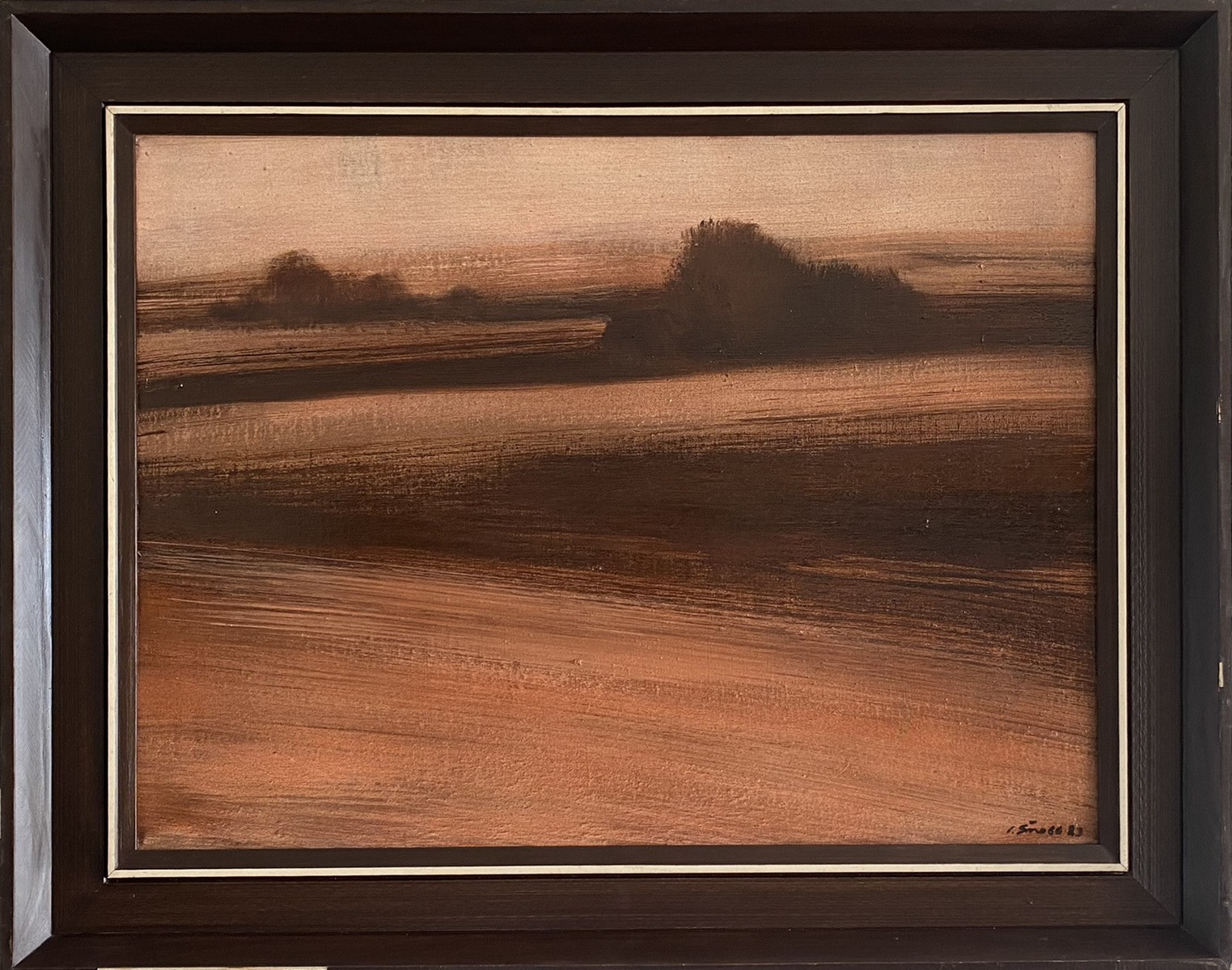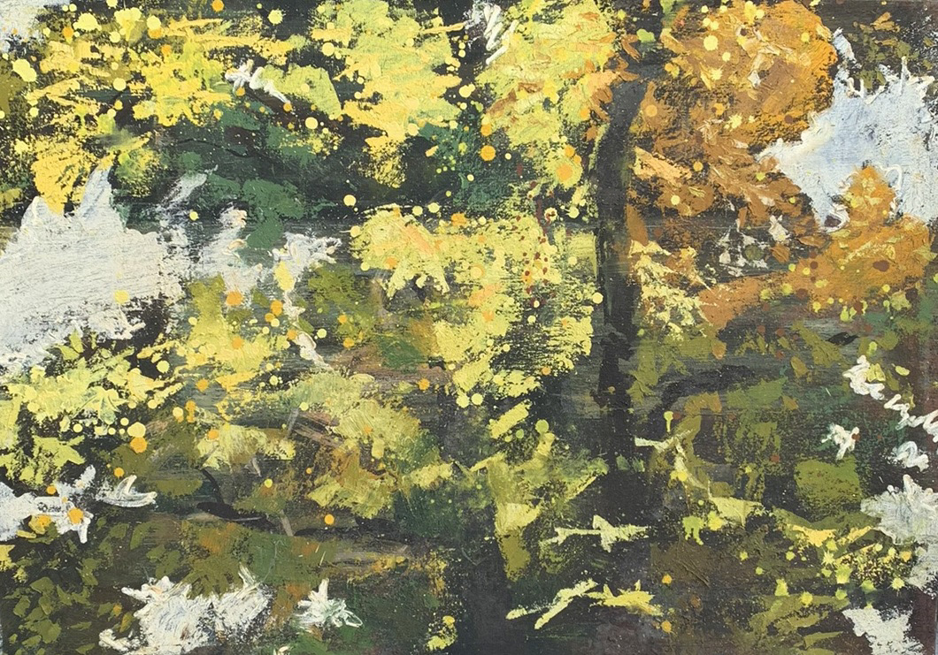 Paintings of the landscapes, trees and grass reflect author's love of nature and fascination of the same. The paintings are calm, subtle, minimalist, even verging on abstraction or impressionist style.